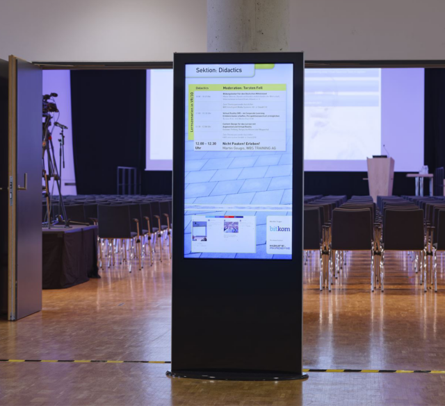 Interaktive Digital Signage Lösungen werden mit zuverlässigen Windows, Linux oder Android Mediaplayern realisiert. Mehrere Inhalte können gleichzeitig zentral über das Netzwerk verwaltet und auf dem Display dargestellt werden. Die zentrale Steuerung ermöglicht es live auf aktuelle Inhalte zuzugreifen und darzustellen. Die Timerfunktion erlaubt das individuelle Ein- und Ausschalten zu einem gewünschten Zeitpunkt. Die Stelensysteme können sowohl lang- als auch kurzfristig gemietet werden. Auf Wunsch kann die Stele mit kundenseitigem Logo oder individueller Grafik beklebt werden.